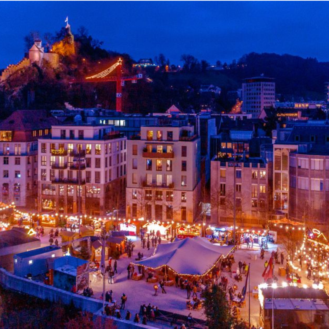 Das Badener WunderDorf ist ein echtes Highlight im Limmattal und der perfekte Ort, um in die Weihnachtsstimmung einzutauchen. Freu dich auf köstliches Street-Food, ein charmantes Gschenkli-Dörfli, gemütliche Markthütten und einzigartige Highlights wie Kuschelhäuschen, ein Lounge-Zelt mit Strohballen und das Terrazza-Zelt mit eigener Bar. Und natürlich: Der beste Glühwein wartet schon auf dich! Ein Erlebnis, das du nicht verpassen solltest.